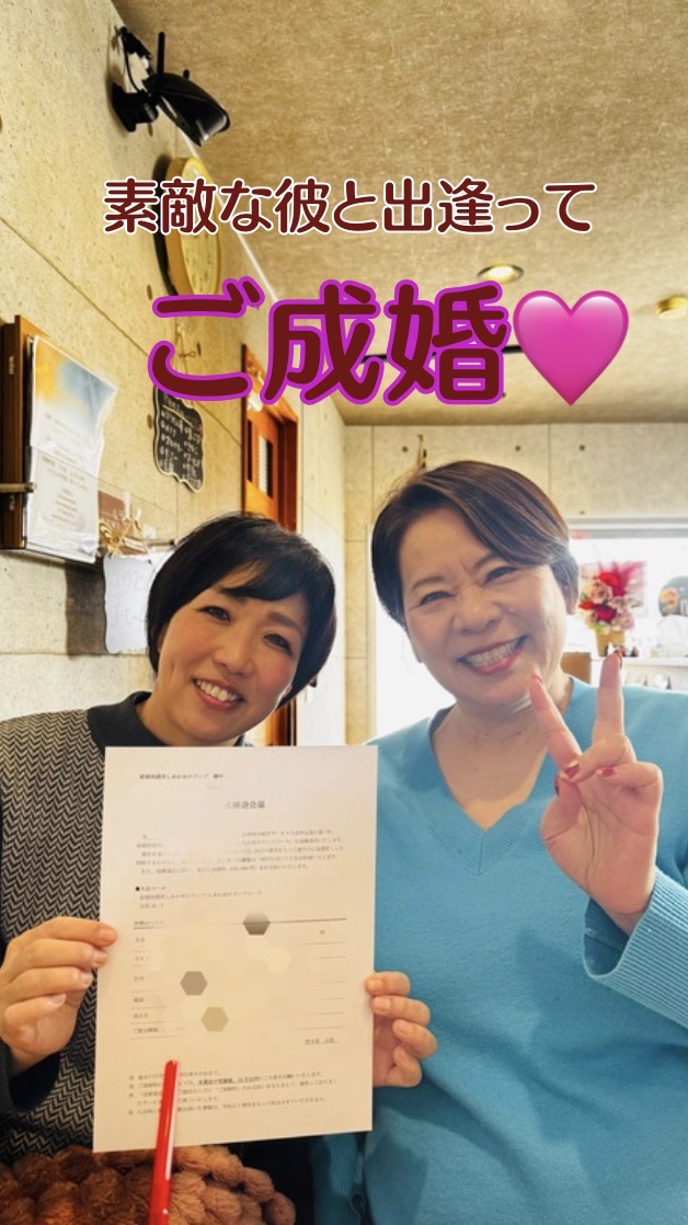 活動10ヶ月でご成婚✨ 若い頃から仕事や夢を追いかけながらボチボチ婚活もしていた50代の女性です。 ルーティンとなっている趣味も大切にしていた彼女が人生最後の婚活にしあわせのランプを選んでくれました。 婚活経験があるからこそ、当会の他社とは全く違うサービスに大満足をしながら10ヶ月で運命の人と出会いました✨ 幸せのお裾分けでお顔出しにもご協力いただきありがとうございました♪